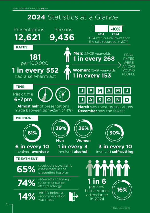 Read our National Self-Harm Registry Ireland 2024 Annual Report, which was published in December 2025.