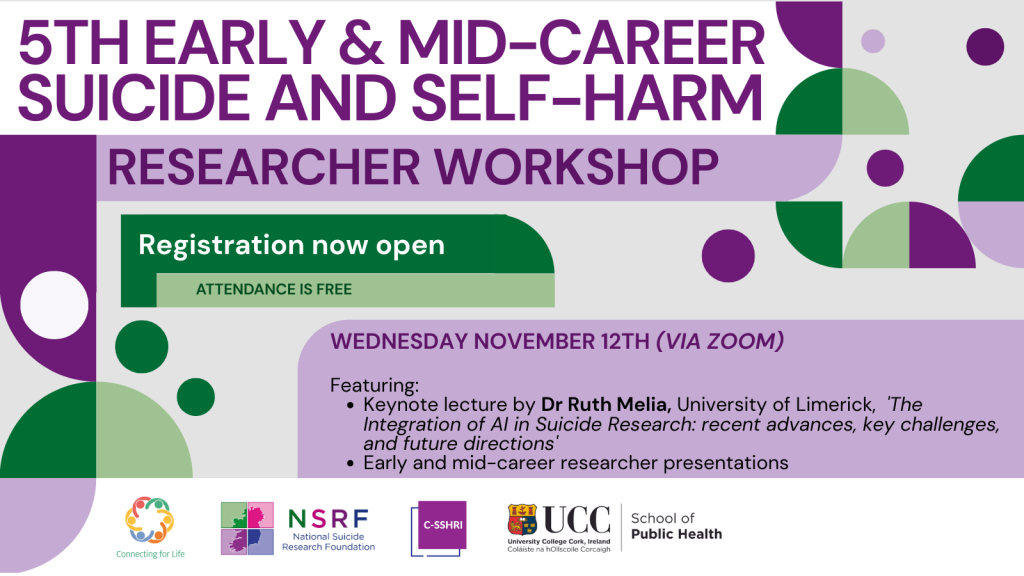 As one event finishes, we look forward to our next – an online Suicide and Self-Harm Research Workshop on November 12th, at which Dr Ruth Melia, University of Limerick, will present a keynote lecture on The Integration of AI in Suicide Research: recent advances, key challenges and future directions.